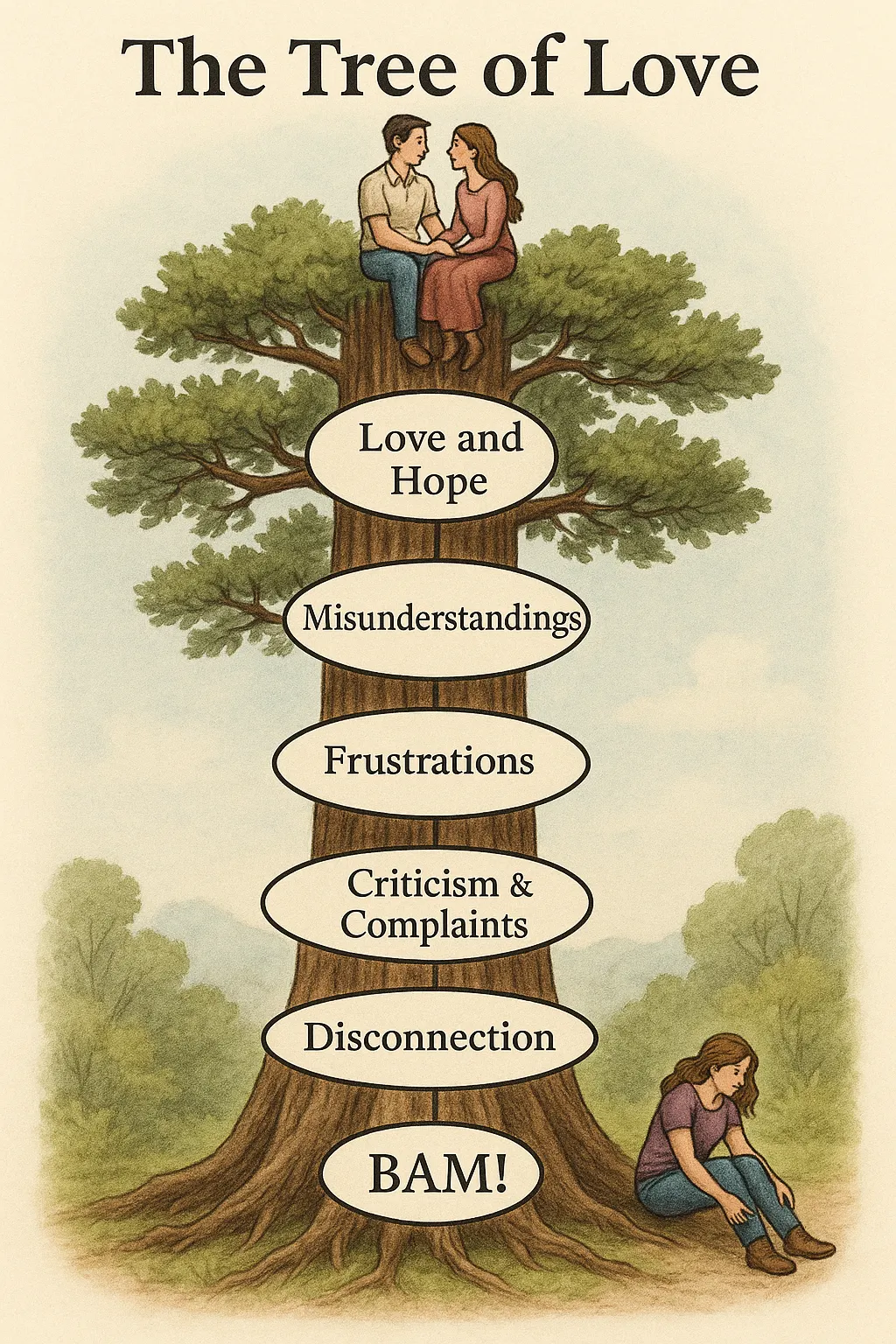 There’s an unspoken spiral that pulls many couples down the branches of the Tree of Love. Left unchecked, it leads to broken connection, resentment, and too often, breakup or divorce. It’s a chronic problem that undermines relationships everywhere, and yet, no one talks about it.